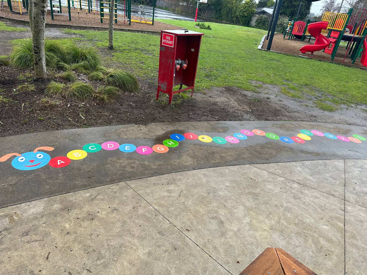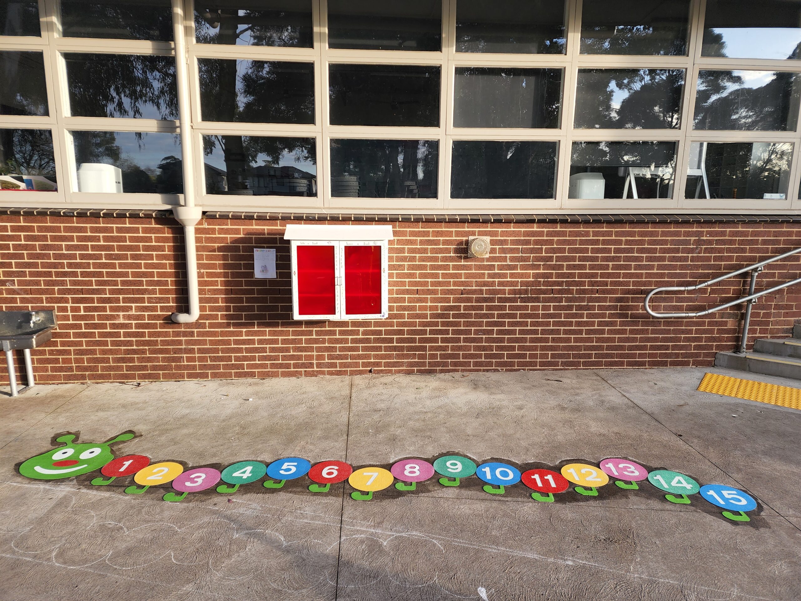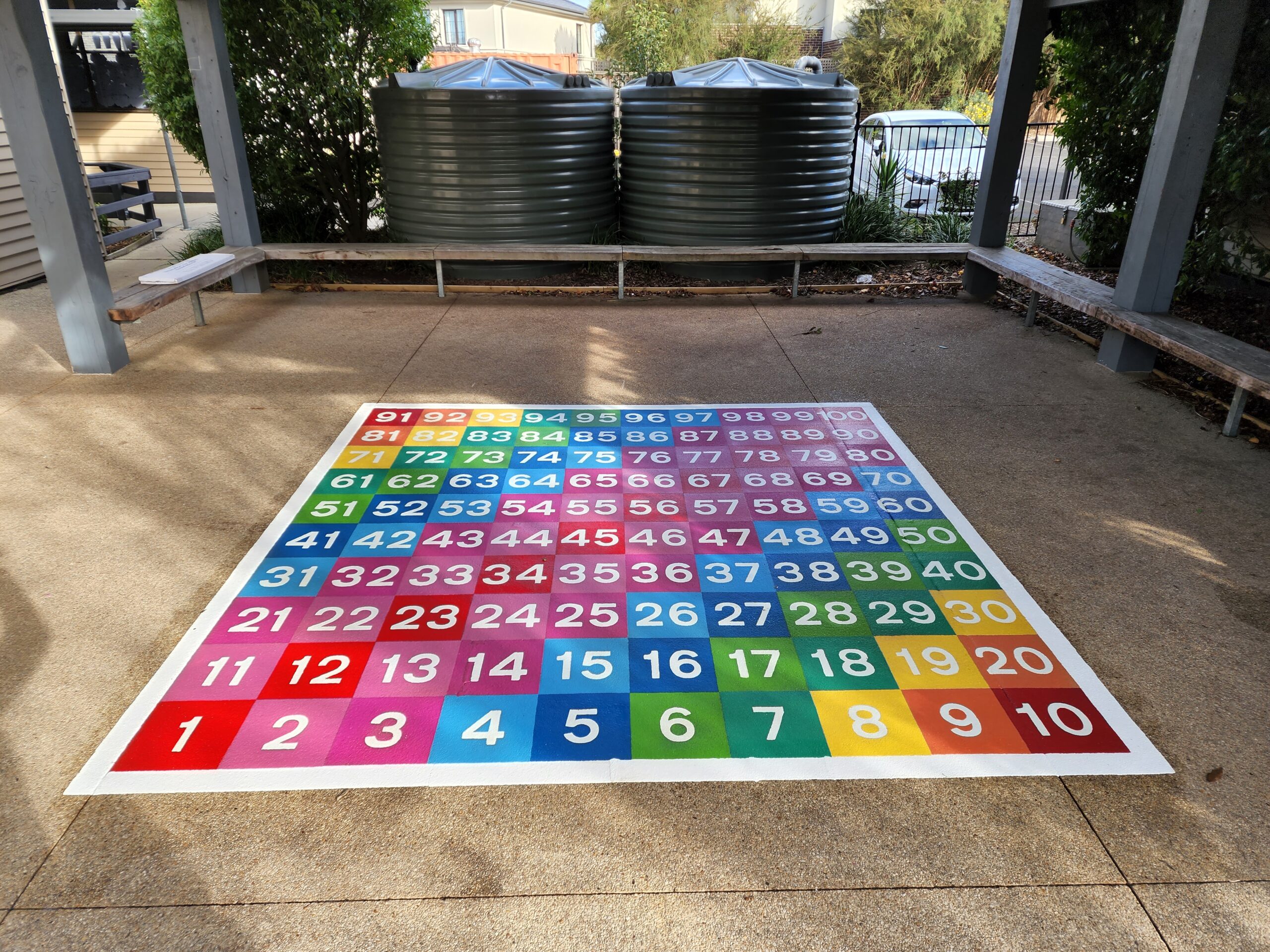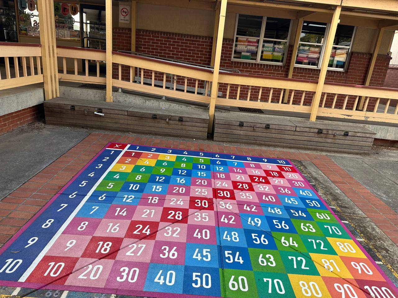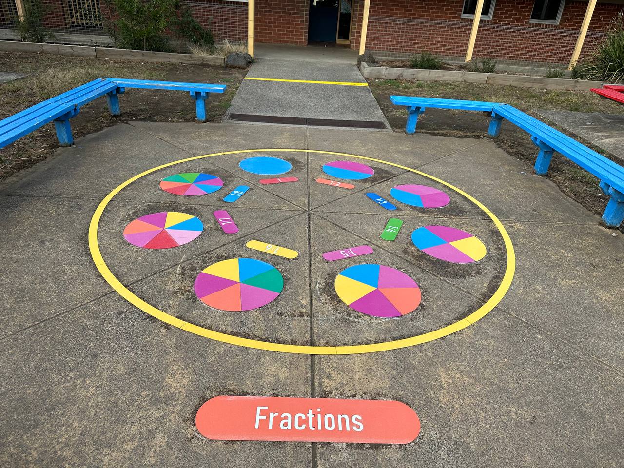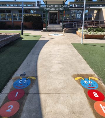 What a way to brighten up school grounds of Glen Katherine Primary and make a dull area a place for learning and enjoyment. Our new outdoor learning area has a mixture of fun, exercise and learning and has been a huge hit with the students. Designed by our school captains, the area is brilliant. Thanks to Flora and the team at Pavemarking!!