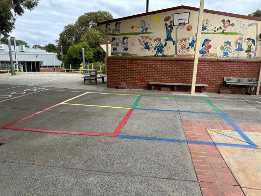 We approached Donburn Primary School in Doncaster East with a proposal to update their old and worn playground games with new bright and colorful ones and “this is the result.”